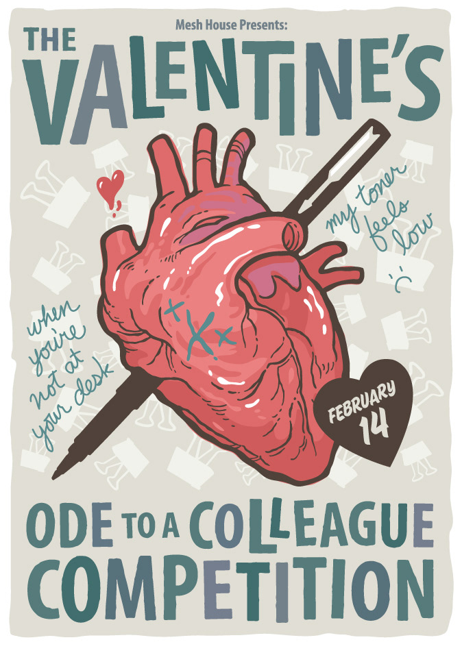 This poster, which combined classic Valentine's symbolism with office supplies, acted as a call for entries.